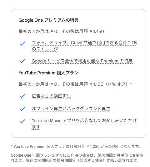 Google One メンバーシップに YouTube Premium が追加されたらしい、という話を聞いたので確認してみた