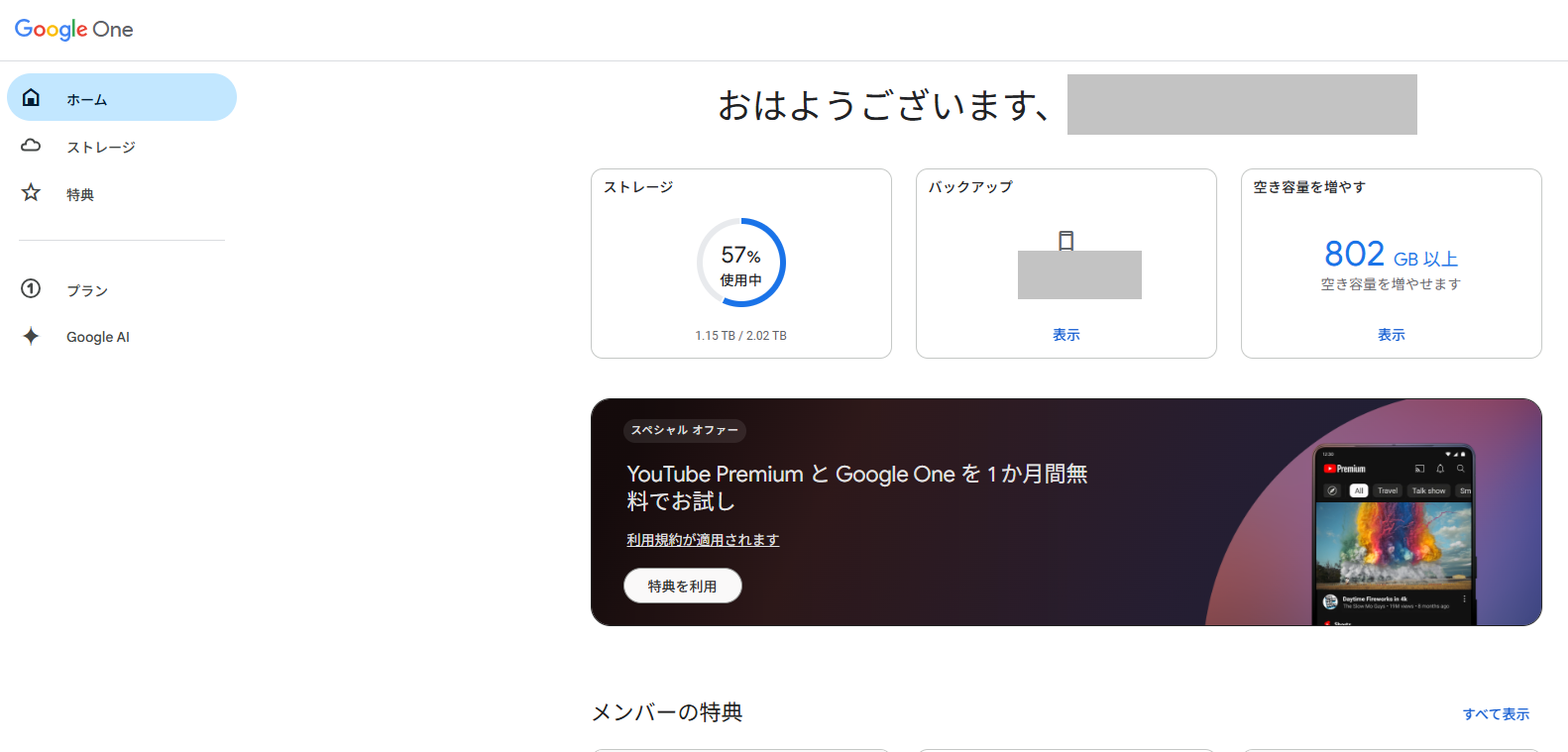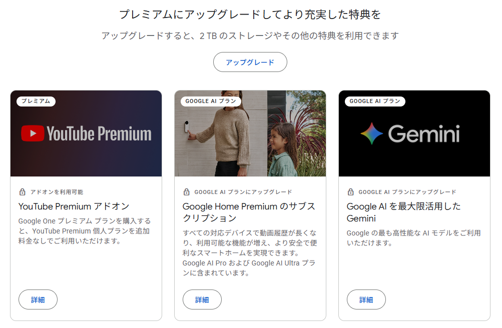 現在の私のプランは何かというと、旧プレミアム 2TBプランなので、プレミアムではあるはずなんだけど・・・